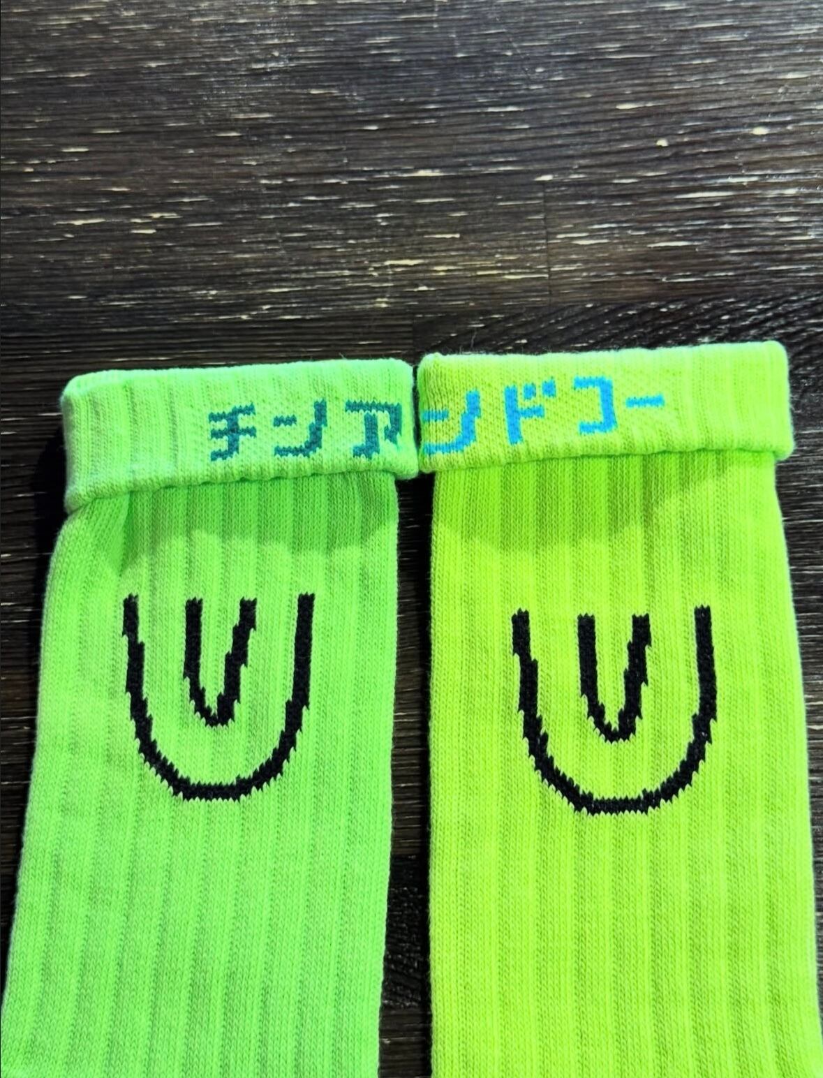 折り返した履き口の文字も"チンアンドコー"にチェンジ。