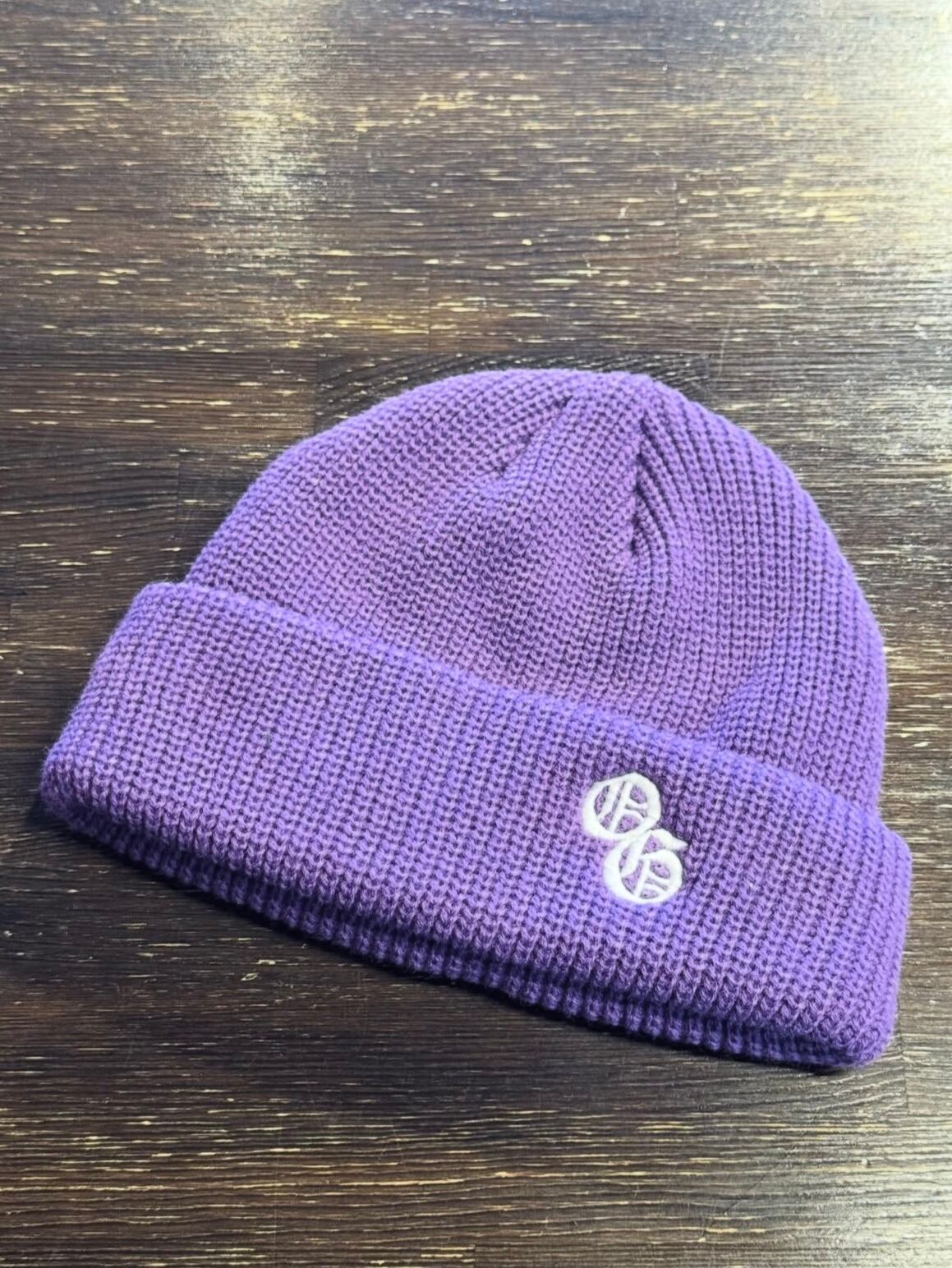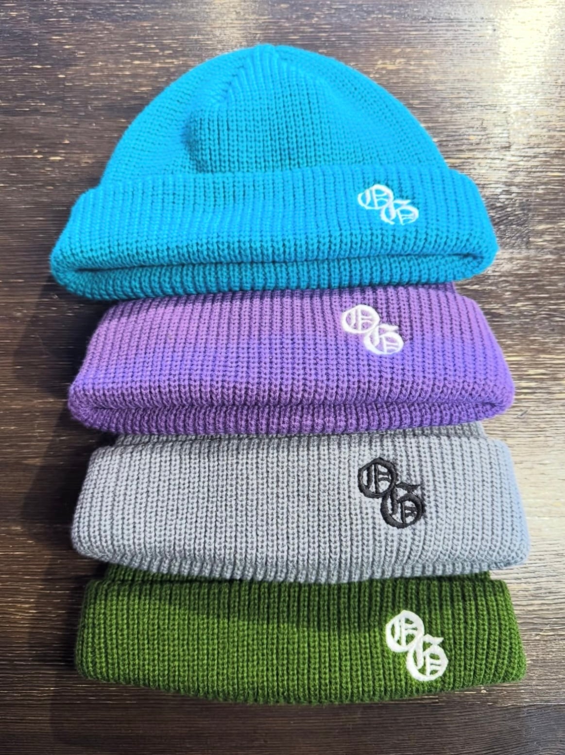 リブ編みでアクリル100%のシンプルなニットキャップ。